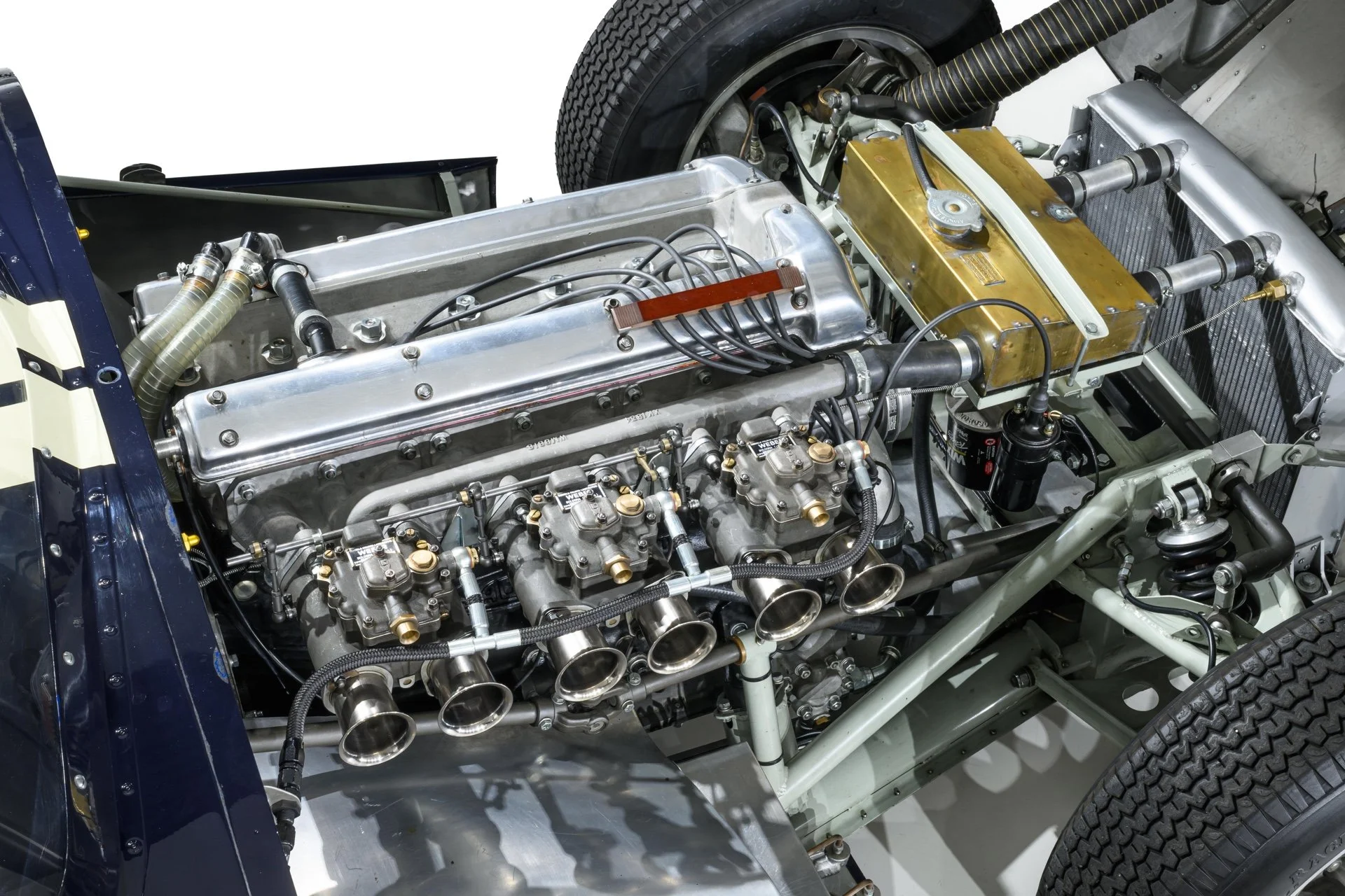 Completed late in 2016, chassis BHL 183S was the result of a meticulous 18-month process. The chassis and bodywork were built in-house by Pearsons Engineering and was fitted with a 3.8-litre Jaguar XK engine built by revered specialists Crosthwaite and Gardiner. Built to the latest specifications, it features a Pearsons Engineering wide-angle cylinder head and a triple Weber carburettor setup. In this guise, the straight-six unit is good for 370 bhp at 7,800 rpm. The Lister Costin was finished in dark metallic blue to which two white racing stripes were later added.